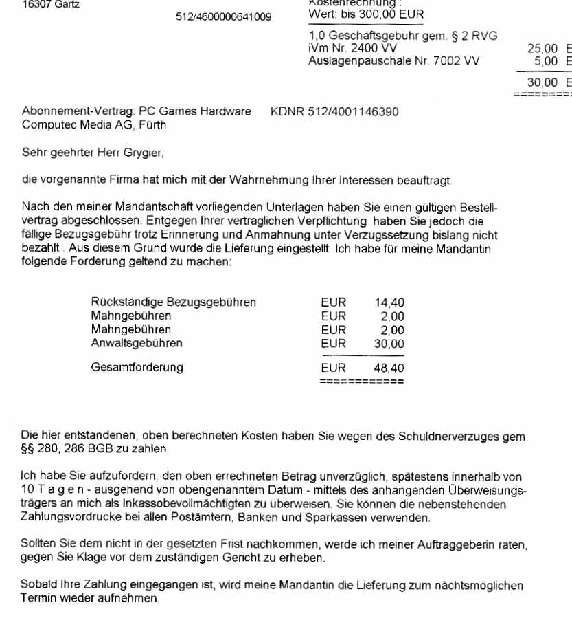 Post vom Anwalt - nicht zu fassen