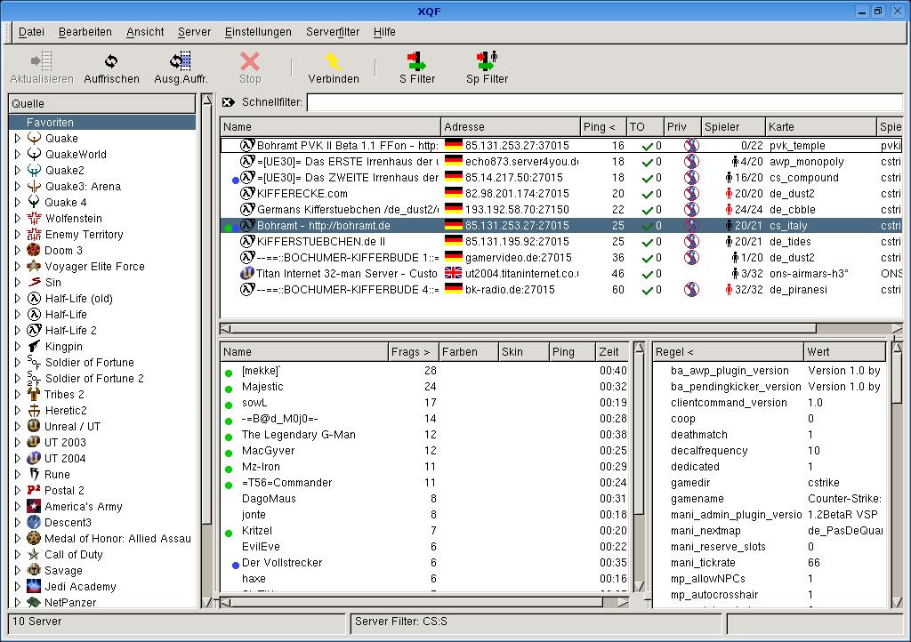Seit ca. zwei Wochen benutze ich nun den "XQF" Serverbrowser und ich muss sagen, das Proggy ist richtig gut: