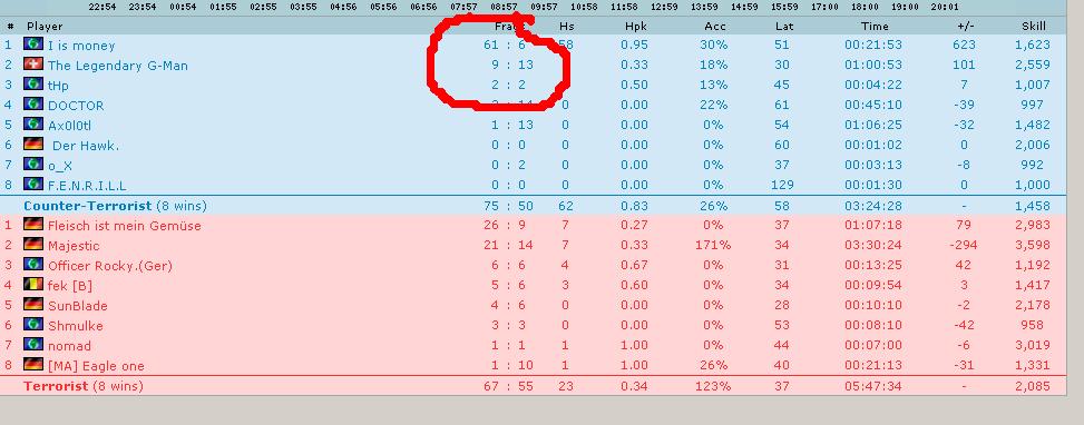 die 6 abschüsse sind teamkills, weil er so nervte... sonst wären es sicher null
