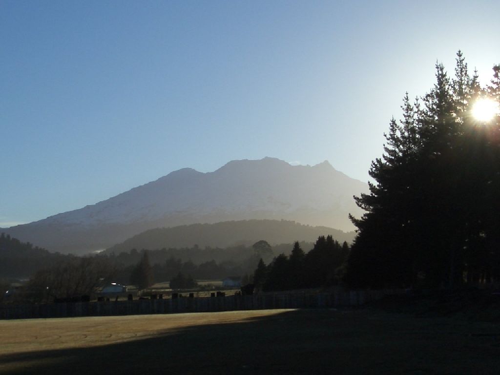 Hier nochmal ein paar Eindruecke aus Neuseeland. Der groesste Vulkan gegen die Sonne fotografiert - Die Blume steht da so einsam in 2000m Hoehe (im Hintergrund die Fjordlandschaft) - Klettern macht Spass, vorausgesetzt die Hoehe macht einem nix aus.