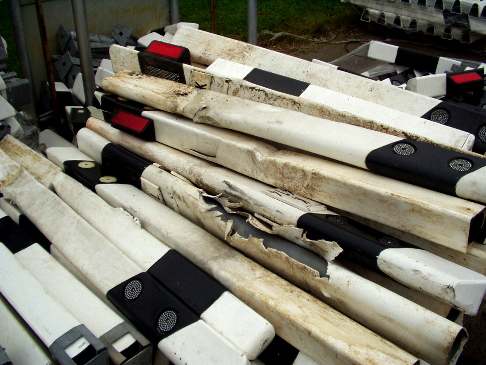 das sind so alte strassenbegrenzungs pfosten, diese weissen mit dem schwarzen strich und die reflecktierenn oda