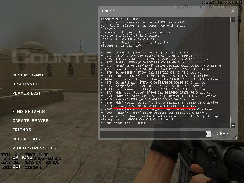 strangl 28. Juni 2007, 14:18 ban-request hab ich gemacht, will hier eigentlich nur den status screen posten...jeder der aufm server war wirds normal bestätigen können Bilder de_dust20013.jpg 139,28 kB, 800×600, 352 mal angesehen