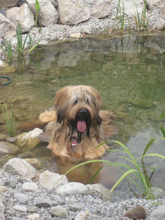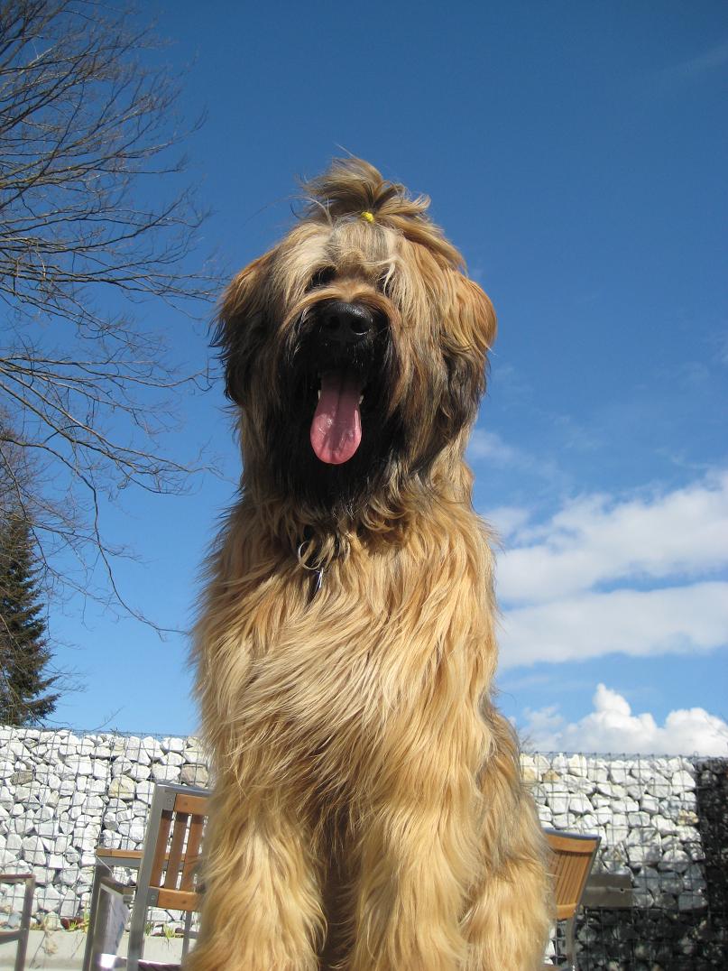 der Hund ist ein Berger de Brie (Briard) meiner hier hat gute 40 Kg