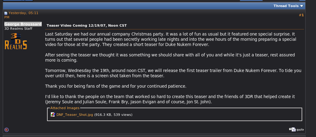 wenn man diesem post glauben geschenkt dann wird es heute so um 18 uhr einen teaser trailer von duke nukem forever geben ...