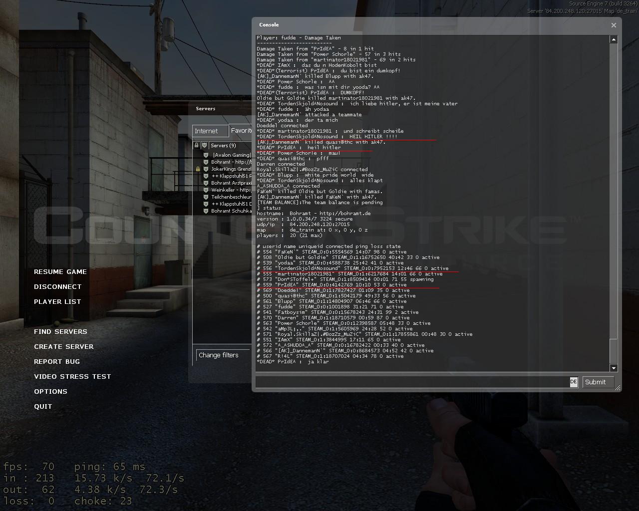 Bann von STEAM_0:0:4142769 und STEAM_0:0:7952153 8. April 2008, 15:03 jo hab request gemacht, aber keinen thread dazu gefunden...wird da nicht automatisch einer zu jedem eintrag erstellt? post hier mal den screen, der ja ganz klar für sich spricht. Bilder de_train0000.jpg 184,86 kB, 1.280×1.024, 269 mal angesehen