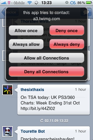 dort kann man dann auswählen ob man das einmal erlauben/verhinden oder immer erlauben/verhinder möchte oder ob man zukünftig alle verbindungen annehmen/ablehnen möchte