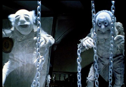 jup, das Bild stammt aus der Muppets-Verfilmung von Dickens´ Weihnachtsgeschichte (kommt jedes Weihnachten auf Kabel 1). Im Buch erscheint Scrooges ehemaliger Kompagnon namens Marley als Geist, um Scrooge die drei Geister anzukündigen, die ihm in der Nacht erscheinen werden. In der Muppets-Geschichte sinds Statler und Waldorf, die da halt Marley & Marley heissen.
