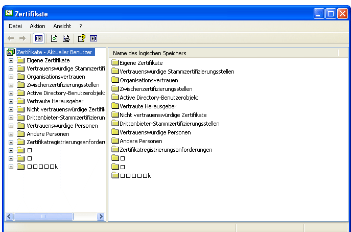 Seltsamme Einträge im Windows XP Home Zertrifikatspeicher