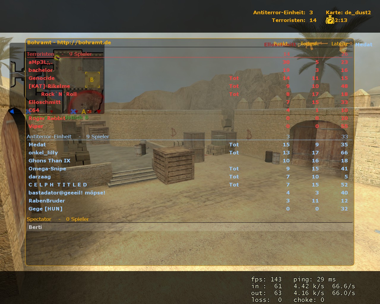 Zu diesem Zeitpunkt waren vielleicht mal 9:9. Aber kommischerweise sind andauernd Leute von den CT's abgehauen und neu irgendwann mal gekommen. Es gab genügend Situationen, wo du rüber gekommen wärst. Aber wie schon gesagt, du wirst es eh wieder abschreiten.
